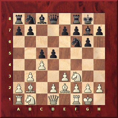 1.Cf3 d5 2.b3 Cf6 3.Fb2 g6 4.e3 Fg7 5.Fe2 O-O 6.OO c5 7.c4