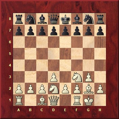 1. d3 — 2. Cf3 — 3. Cbd2 — 4. g3 — 5. Fg2 — 6. O-O