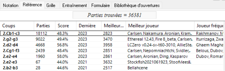 Position après 1.c4 g6